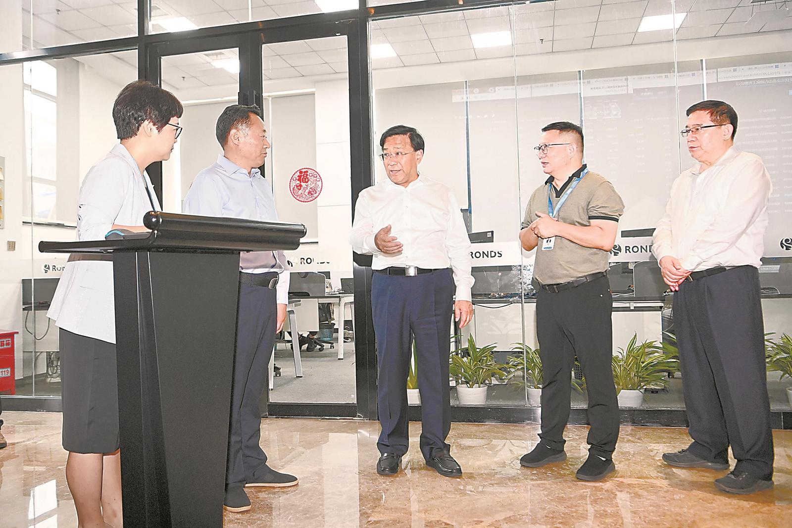 中安在线、中安新闻客户端讯 8月11日上午,省委书记韩俊在合肥市调研数字经济发展情况。他强调,要深入学习贯彻习近平总书记关于数字经济发展的重要论述和关于安徽工作的重要讲话重要指示精神,认真落实省委十一届五次全会部署要求,以高水平创新型省份建设为旗帜性抓手,促进数字经济和实体经济深度融合,全面建设数字安徽,赋能经济高质量发展。省领导虞爱华、张韵声、张红文参加调研。