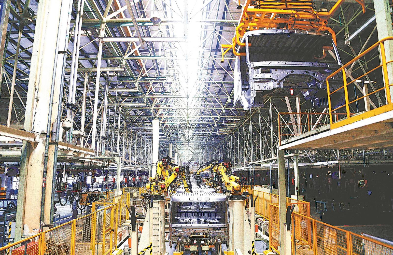 汉马科技全自动机器人焊接生产线在焊接新能源车驾驶室。通讯员 陈亚东 陈会松 摄