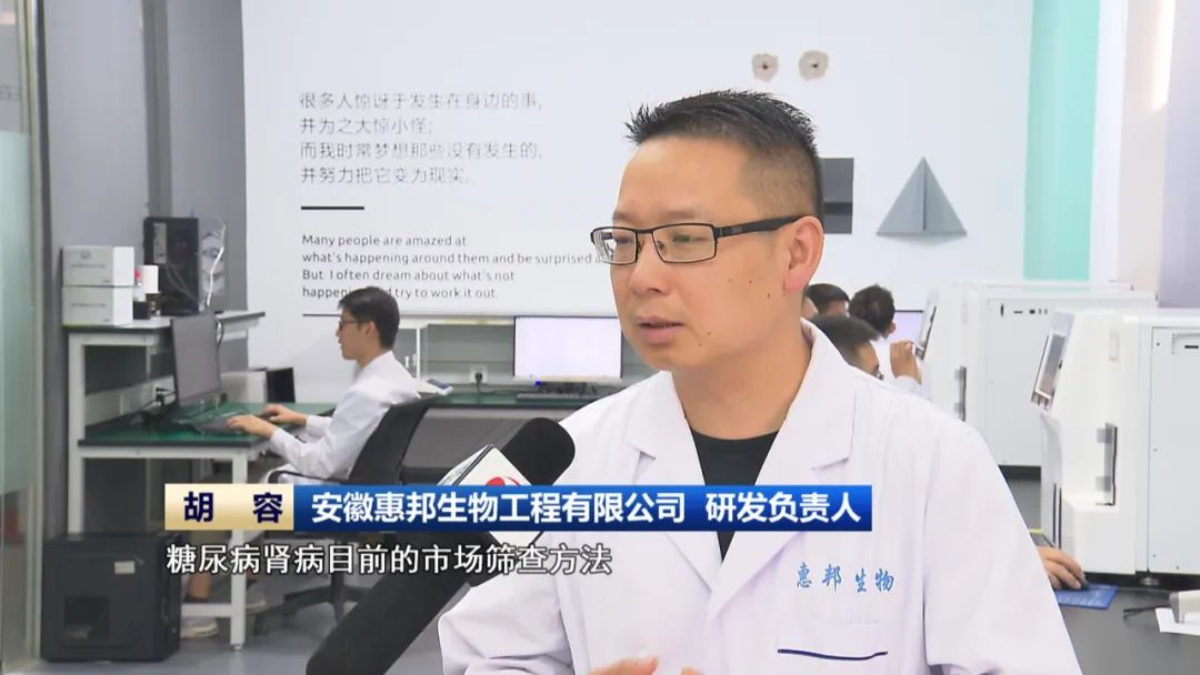 这里是位于合肥市高新区的安徽惠邦生物工程有限公司,经过十多年的潜心研究,这里的科研团队成功发现了一种糖尿病肾病新的标志物,并且自研了我手上拿的这款专用检测试剂,可以实现对糖尿病患者肾损伤的早期筛查,辅助临床进行早期干预和指导治疗。