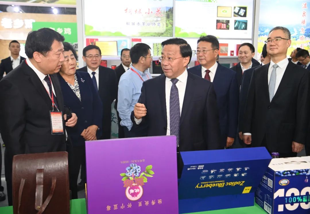 开幕式后,韩俊、王清宪等与会领导巡视了展馆。展馆果蔬飘香,客商熙来攘往。安徽农业农村发展成就展厅全面展示了党的十八大以来安徽农业农村发展取得的系列成就,韩俊、王清宪驻足品牌宣传栏前,仔细察看,听取情况介绍。韩俊强调要充分发挥我省农特产品资源丰富的优势,擦亮叫响“徽字号”品牌,进一步提升农产品附加值和市场竞争力,打造“千亿斤江淮粮仓”,做好“粮头食尾”“畜头肉尾”“农头工尾”增值大文章,加快建设高质高效的农业强省。江淮大地地广物丰,韩俊、王清宪走进合肥、宿州、蚌埠、滁州、亳州、阜阳、六安、安庆、芜湖、铜陵、池州市展厅,详细了解各地农业发展成就和特色农产品。韩俊要求各地加大农业科技投入力度,健全良种繁育体系,加快打造农业科技创新策源地。要大力发展农产品精深加工,加强农产品产后的分级包装、营销和品牌建设,做大徽派预制菜规模,带动更多农民群众增收致富。马鞍山、宣城、黄山等市通过图片、视频、实物等生动展示了乡村建设成就,韩俊、王清宪认真听取有关情况介绍,强调要抓好“千村引领、万村升级”工程,发挥资源优势,聚焦“吃住行游购娱”,推动农文旅深度融合,加快建设彰显徽风皖韵的宜居宜业和美乡村。黑土地上好“丰”景,吉林省展厅集中展示了19家农业产业化龙头企业的200多种特色农产品,韩俊、王清宪驻足细看,与现场工作人员亲切交流,表示要大力推进农业交流合作,为加快建设农业强国作出更大贡献。韩俊、王清宪来到安徽援疆馆和田地区皮山县特色优质农产品展台,了解当地农特产品产销情况,要求加大援疆力度,推动更多新疆优质农产品端上安徽人的餐桌。在湖北、重庆等展馆,韩俊、王清宪详细了解农产品产销等情况,希望相互借鉴发展经验,加强农业文化交流,强化食物多元供给,更好满足老百姓高品质生活需求。