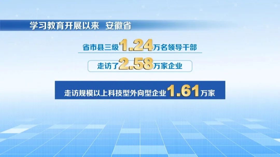 学习教育开展以来,省市县三级1.24万名领导干部走访了2.58万家企业,其中走访规模以上科技型外向型企业1.61万家,两个月来,全省收集涉企问题1.42万个,办结1.37万个,办结率达96.6%。优良的作风保障了高质量发展,今年上半年,全省地区生产总值25723亿元,按不变价格计算,同比增长5.6%。其中,战略性新兴产业产值增长6.1%,占规上工业产值比重43.1%,高技术制造业增加值增长23.6%,连续18个月保持18%以上增速,进出口总额增长15.2%,高于全国12.3个百分点,居全国第6位、长三角第1位。全省经济运行总体平稳、稳中有进,多数指标高于全国、好于预期。