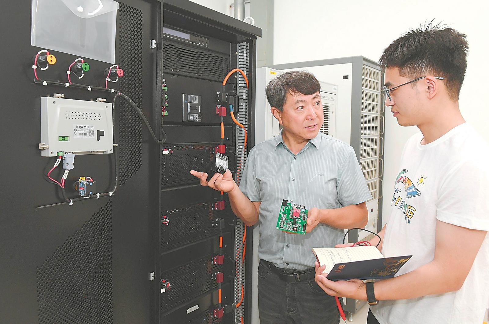 安徽大学先进电力电子与电能变换团队查看使用了高功率密度变换器的产品。记者 徐旻昊 摄