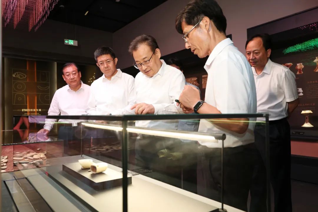 8月11日,省委书记梁言顺在凌家滩考古遗址公园,察看文物展陈,了解遗址发掘历程、考古研究、保护利用等情况。