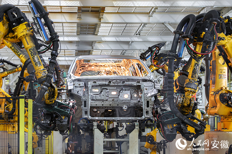 奇瑞汽车焊装车间,机械手施展硬核“手艺”。人民网记者 张俊摄