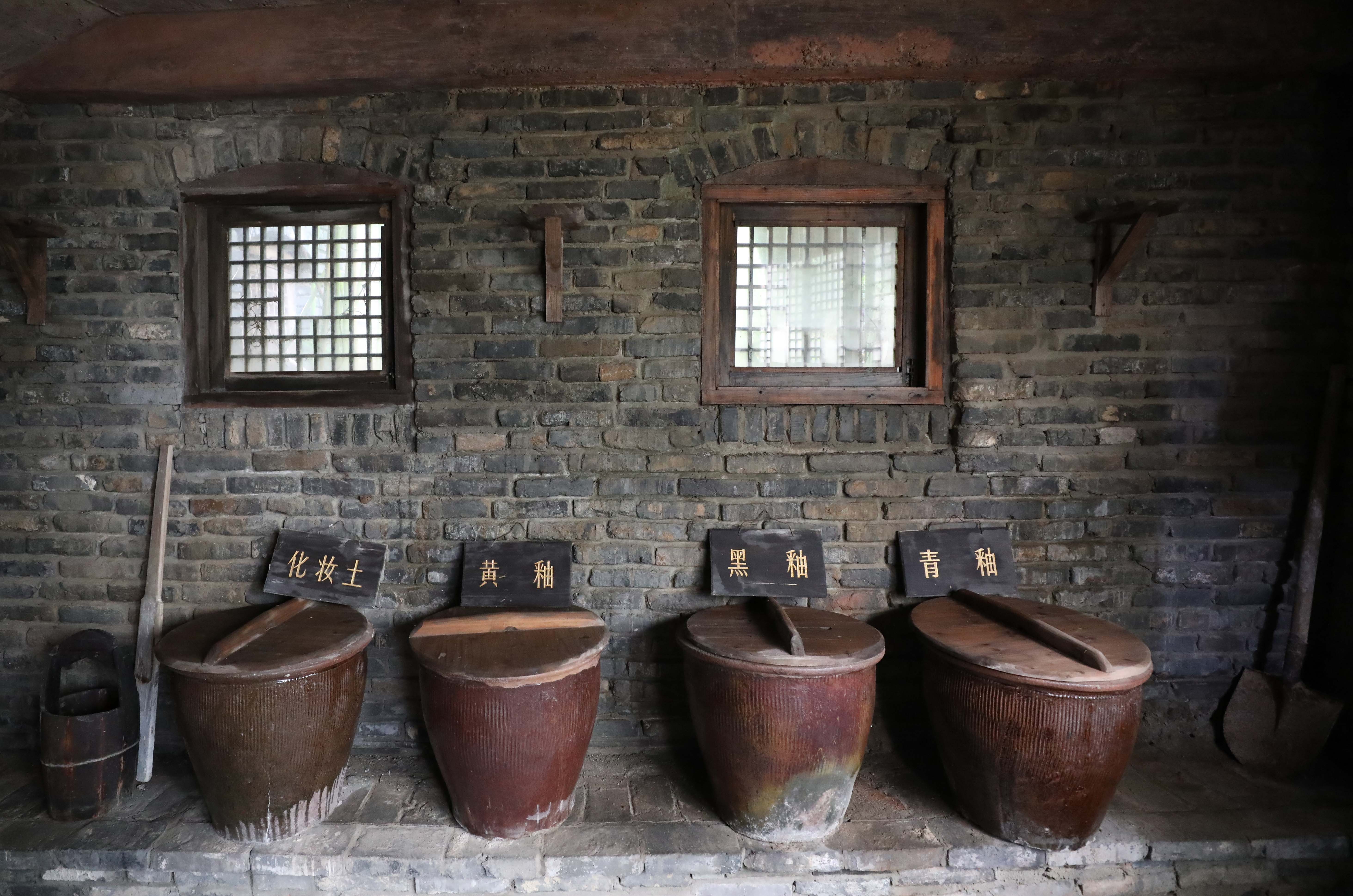 文化园里的制作寿州窑的原料缸。