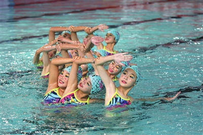 据了解,本届赛事延续专业规范的竞赛传统,设体育院校组、普通高校组、中学组、小学组等7个竞赛组别,涵盖集体徒手规定动作操、双人操、集体操等11个竞赛项目,并增设自由展示项目。比赛按项目、组别及团体总分分别录取前8名,吸引了全国15支参赛队近300名运动员、教练员参赛,展现了水中健身操集竞技性、艺术性与群众性于一体的独特魅力。