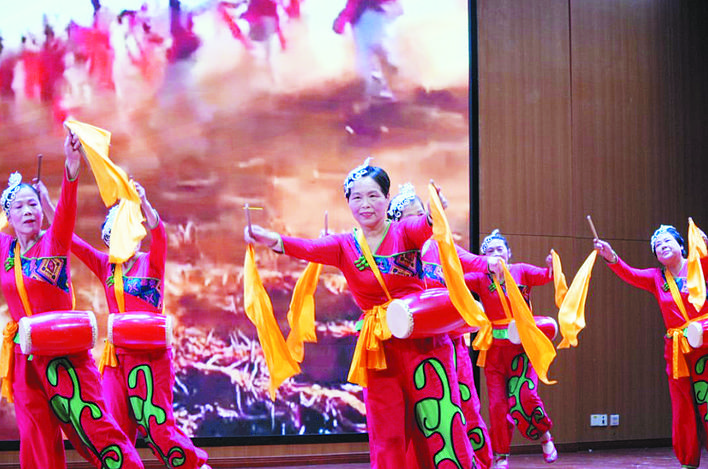 老年教育成果展演《吉祥腰鼓》节目。黎超 摄