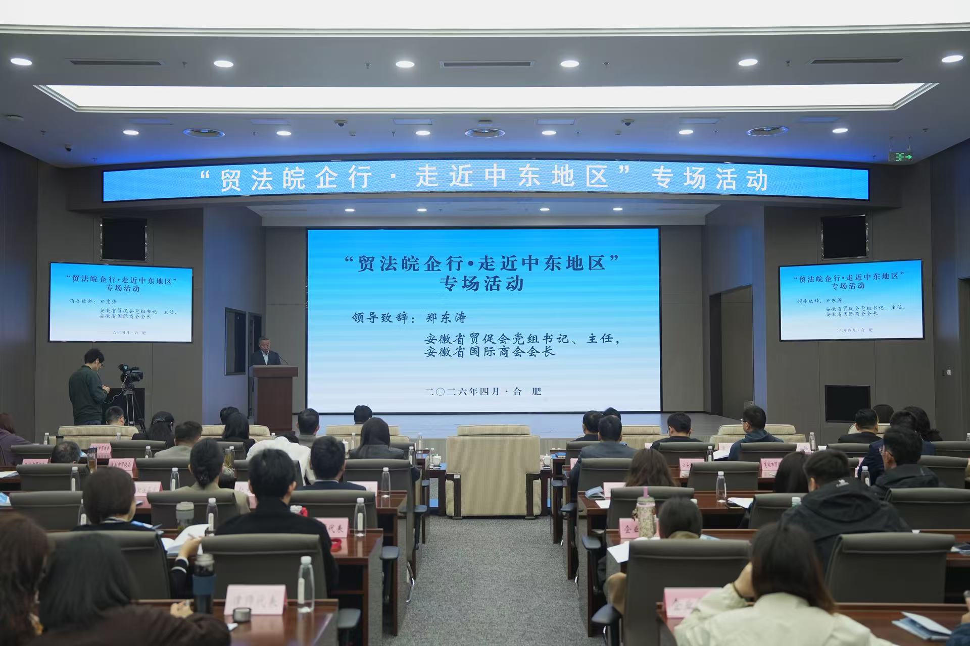 中安在线、中安新闻客户端讯 日前,全省贸促系统商法服务品牌“贸法皖企行”以“走近中东地区”为题在合肥举办专场活动。来自全省16个地市的外向型企业代表、律师代表和省、市有关机构业务负责同志共200余人参加活动。