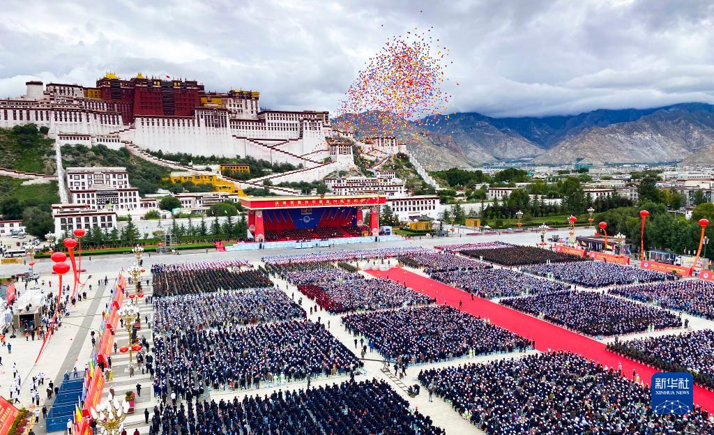 这是8月19日拍摄的庆祝西藏和平解放70周年大会现场。新华社记者 孙非 摄