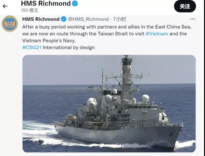 英国人又来了,2008年后首次,英国军舰超越台湾海峡。英国军方还特意发推昭告天下,生怕世界不知道。