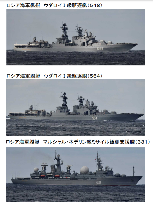 日本防卫省统合幕僚监部10月18日称,18日(星期一)上午8 点左右,日本海上自卫队在北海道奥尻岛西南方向展开行动。在110公里的海域范围内,发现中国海军的1艘055型驱逐舰(101舰)、1艘052型驱逐舰(172舰)、2艘054A型护卫舰(515舰、573舰)、1艘补给舰(902舰)和俄罗斯海军无畏级驱逐舰(548舰和564舰),两艘级护卫舰(335舰和339舰),一艘导弹观测舰(331舰)。随后这些军舰在津轻海峡向东航行,驶向太平洋。