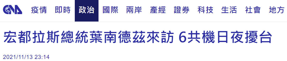 原标题:台媒炒作:洪都拉斯总统“来访”,解放军6架次军机日夜进入台西南空域