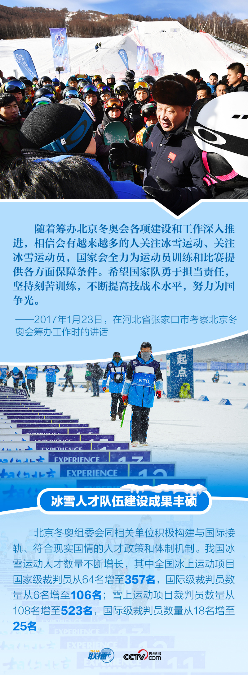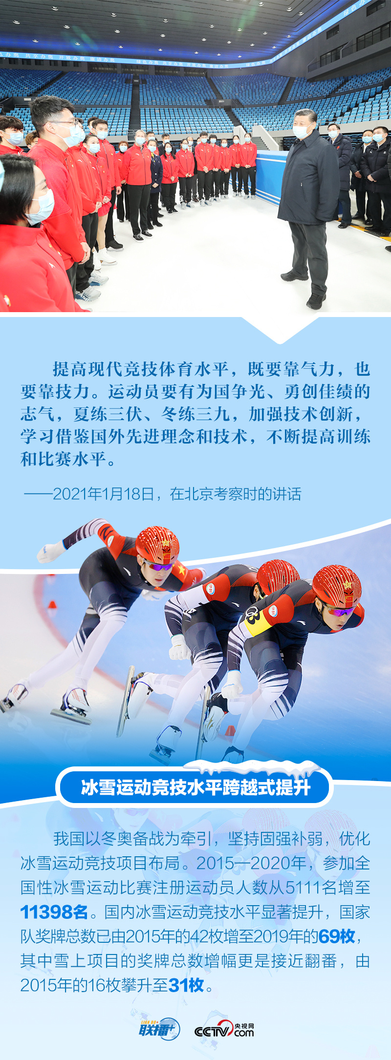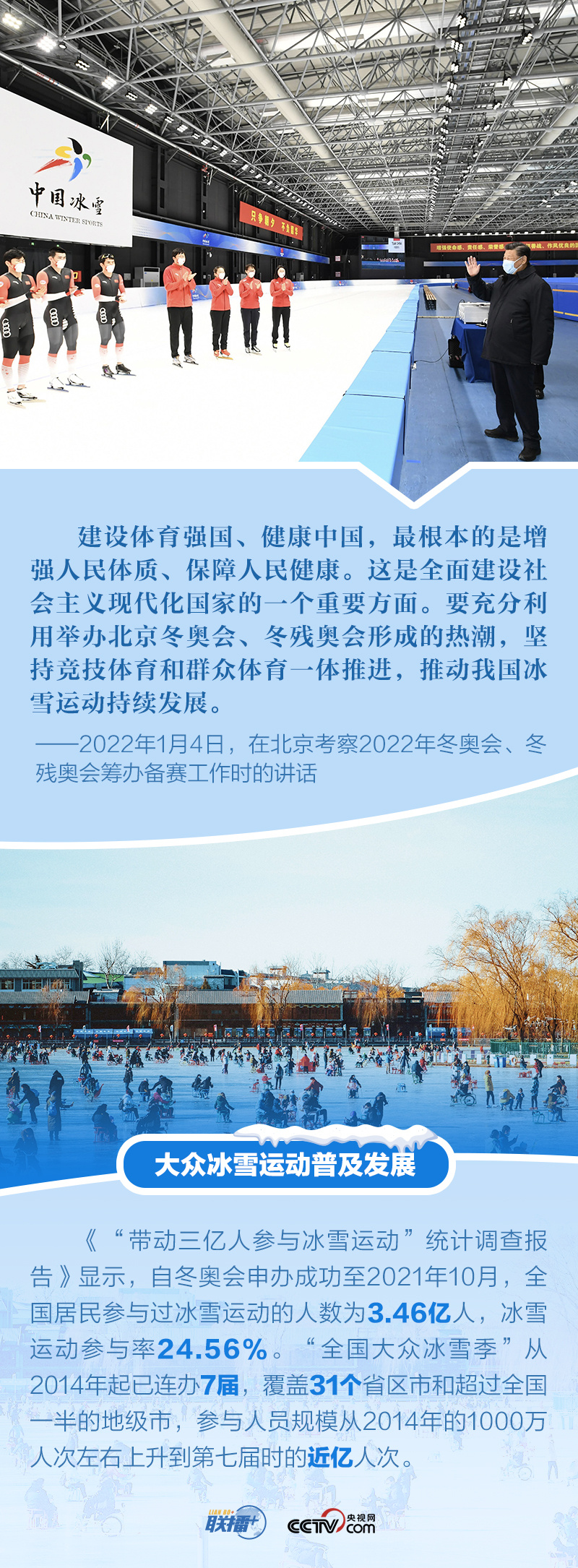 冬奥梦交汇中国梦,体育强则中国强。多年来,体育爱好者习近平始终关注我国冰雪运动发展,在不同场合强调对冬季奥林匹克运动的支持,宣示办好北京冬奥会、冬残奥会的决心。距离北京冬奥会开幕仅十余天,央视网《联播+》特梳理总书记关于北京冬奥会、冬残奥会筹办备赛工作的重要活动及讲话等,与您一起学习。