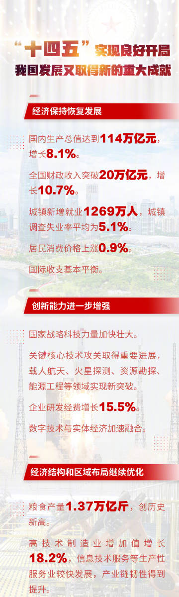 #去年主要目标任务较好完成#【权威快报|#十四五实现良好开局# 我国发展又取得新的重大成就】5日提请十三届全国人大五次会议审议的政府工作报告提出,一年来,面对复杂严峻的国内外形势和诸多风险挑战,全国上下共同努力,统筹疫情防控和经济社会发展,全年主要目标任务较好完成,“十四五”实现良好开 详细