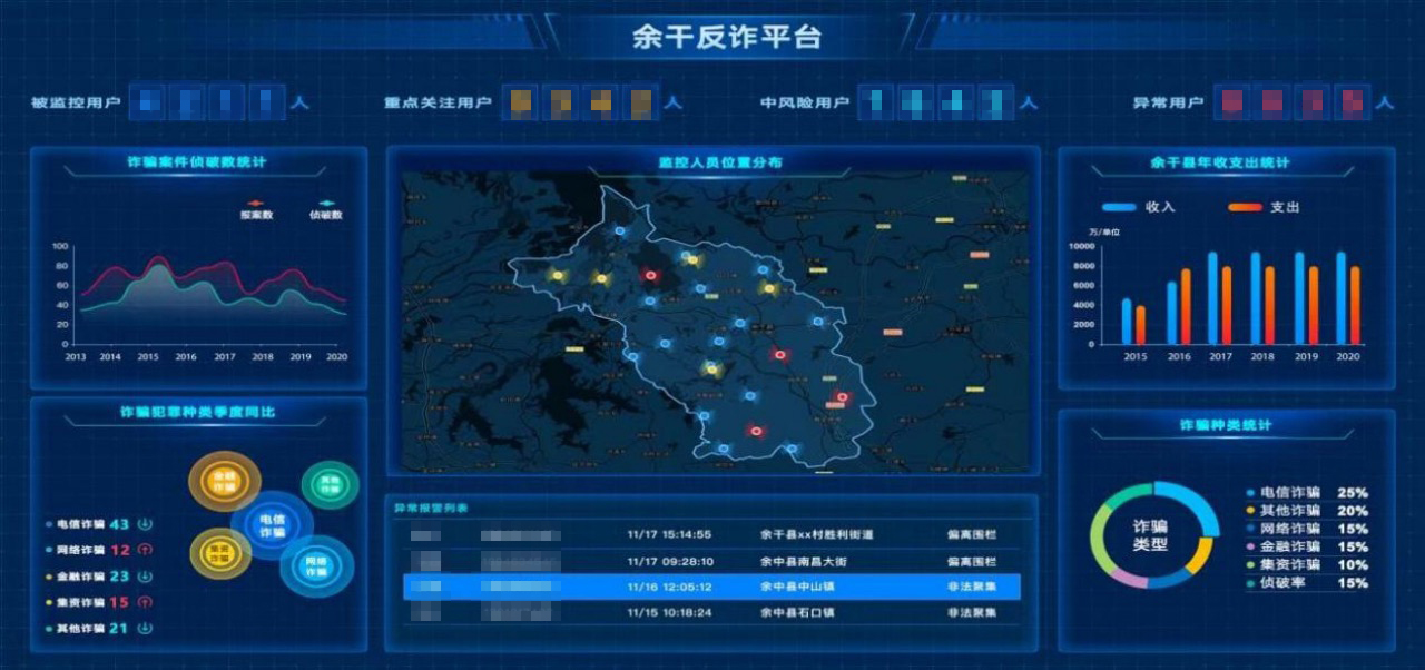 江西联通与地方政府合作研发了基于5G大数据应用的监管平台。平台在情报预警、情报分析、溯源和侦查落地等基础上建立全反诈数据链条服务。2021年,反诈监管平台破获案件315起,直接避免和挽回经济损失800余万,涉诈预警成效十分显著。