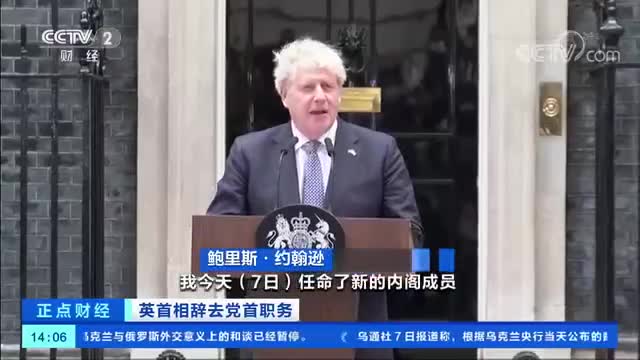 7日,英国首相约翰逊在唐宁街10号前发表辞职演说,宣布将会辞去首相职务,但坚持履职到十月,届时保守党大会将选出新一任党魁。