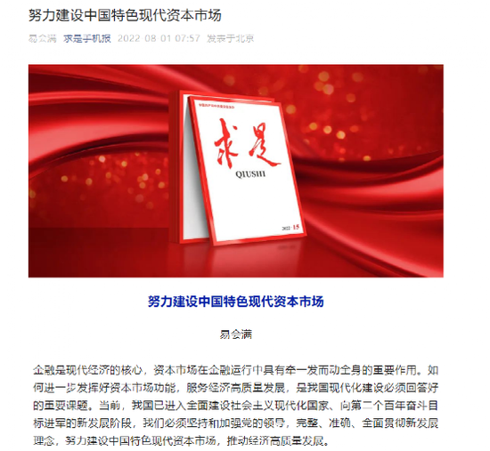 8月1日,中国证监会党委书记、主席易会满在《求是》发文指出,近年来,我国保持流动性合理充裕,市场利率总体下行,社会融资规模增速与国内生产总值名义增速基本匹配。但总的看,我国不缺资金但缺资本,尤其是缺创新资本的问题比较突出,在传统行业投资增速下行压力加大的情况下,这一结构性矛盾更加凸显。