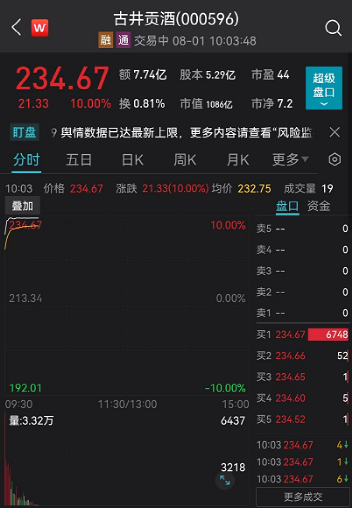 8月1日上午,白酒板块算得上是为数不多表现优异的板块,古井贡酒开盘后不久即拉出涨停盘,今世缘涨幅亦超6%,迎驾贡酒、洋河股份、口子窖等个股股价纷纷抬升。