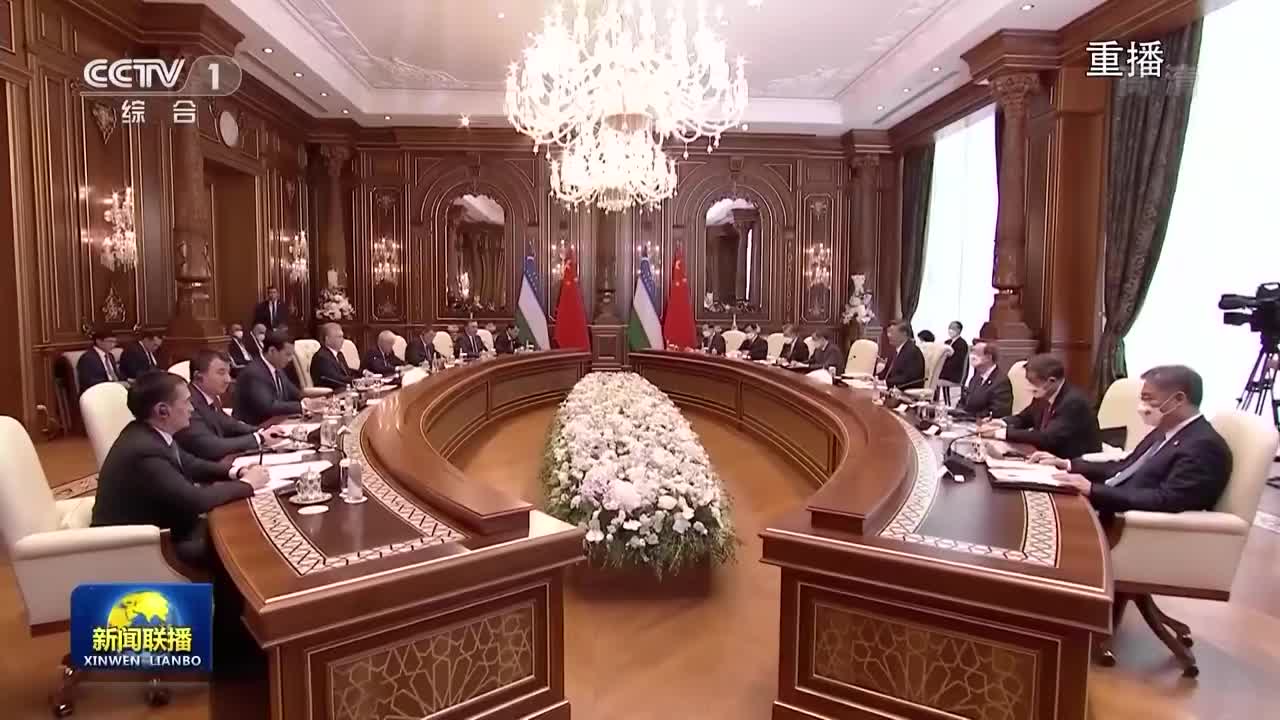 在撒马尔罕国际会议中心,习近平主席同米尔济约耶夫总统举行正式会谈。