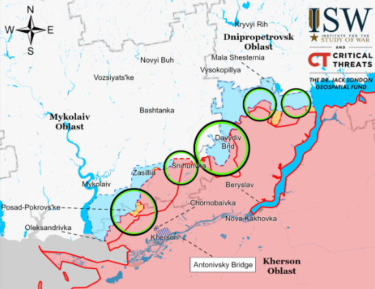 另外,俄方的消息称,俄军实际上已经占领了因古列茨河右岸的一个桥头堡,面积大约12平方公里,有机会对尼古拉耶夫发动攻势。