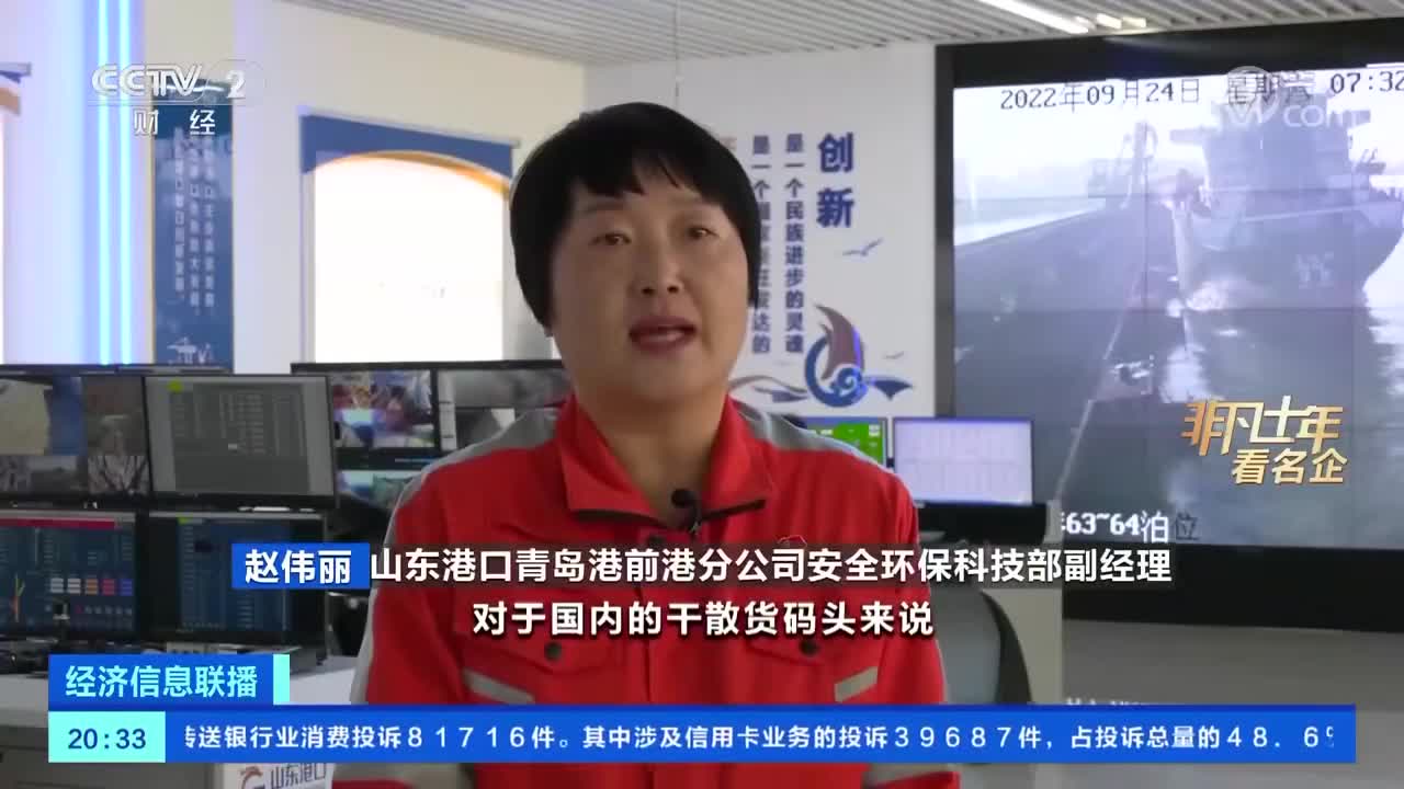 作为干散货大港,这里有大量煤炭、铁矿石等大宗商品的装卸。这十年,山东港口加快淘汰高污染高耗能设备,对港口污染进行防治,遮盖物料、装卸喷淋、回收油气,还建成全国首个港口加氢站。