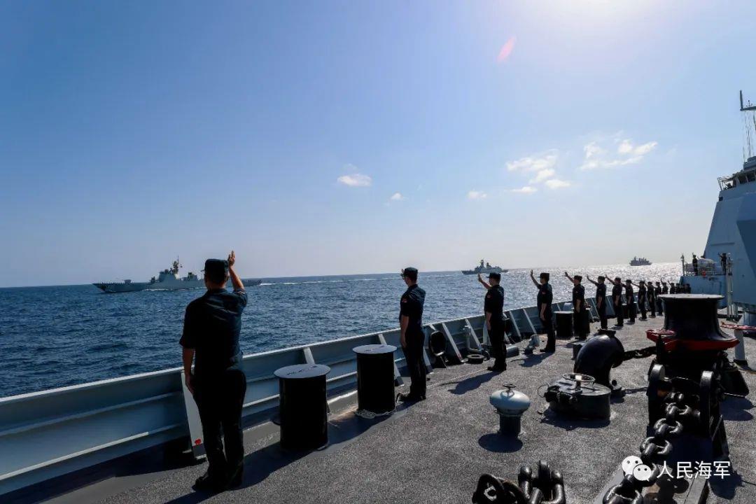 当地时间10月15日上午,海军第41批、第42批护航编队在亚丁湾某海域举行护航任务交接仪式,这标志着第42批护航编队正式接替第41批护航编队,开始执行亚丁湾、索马里海域护航任务。