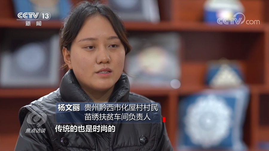 杨文丽,化屋村里的苗绣致富带头人。快过节了,这是她节前要送出的最后一套定制苗族传统服饰。不到30岁的杨文丽已经有20多年绣龄,手艺是从姥姥和妈妈那儿一针一线传下来的。