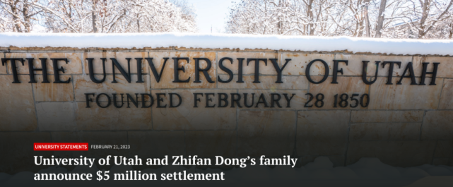 除经济补偿,犹他大学还表示将在校园内为董芷帆竖立一座纪念碑。