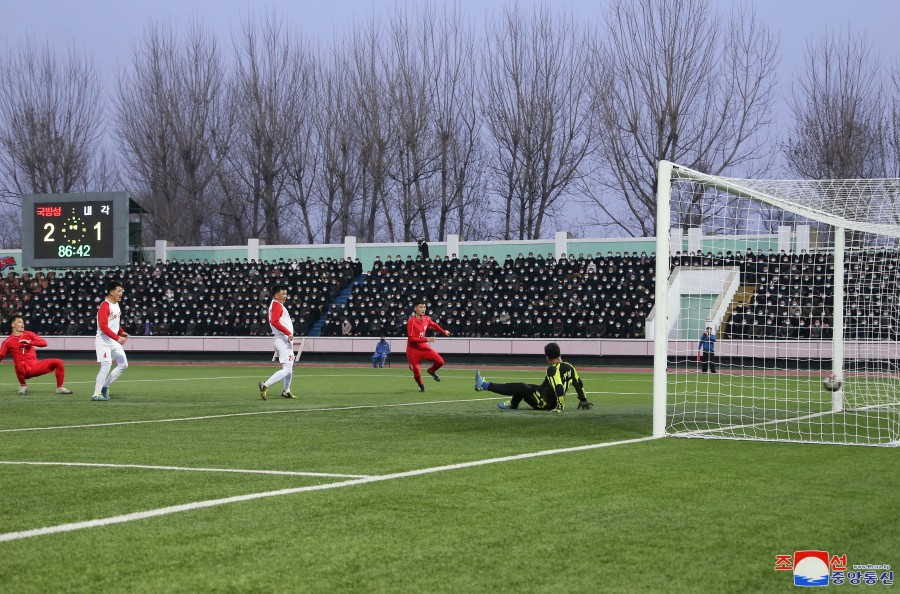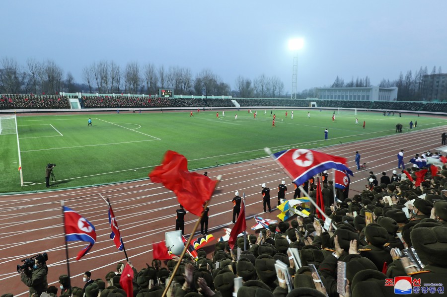 (观察者网讯)2月16日是朝鲜主要节日之一“光明星节”,暨已故朝鲜最高领导人金正日诞辰日。据朝中社2月18日报道,“光明星节”之际,朝鲜内阁和国防省职员于2月17日进行了足球和拔河等体育比赛。朝鲜劳动党总书记、国务委员长金正恩偕女儿一同观看了比赛。