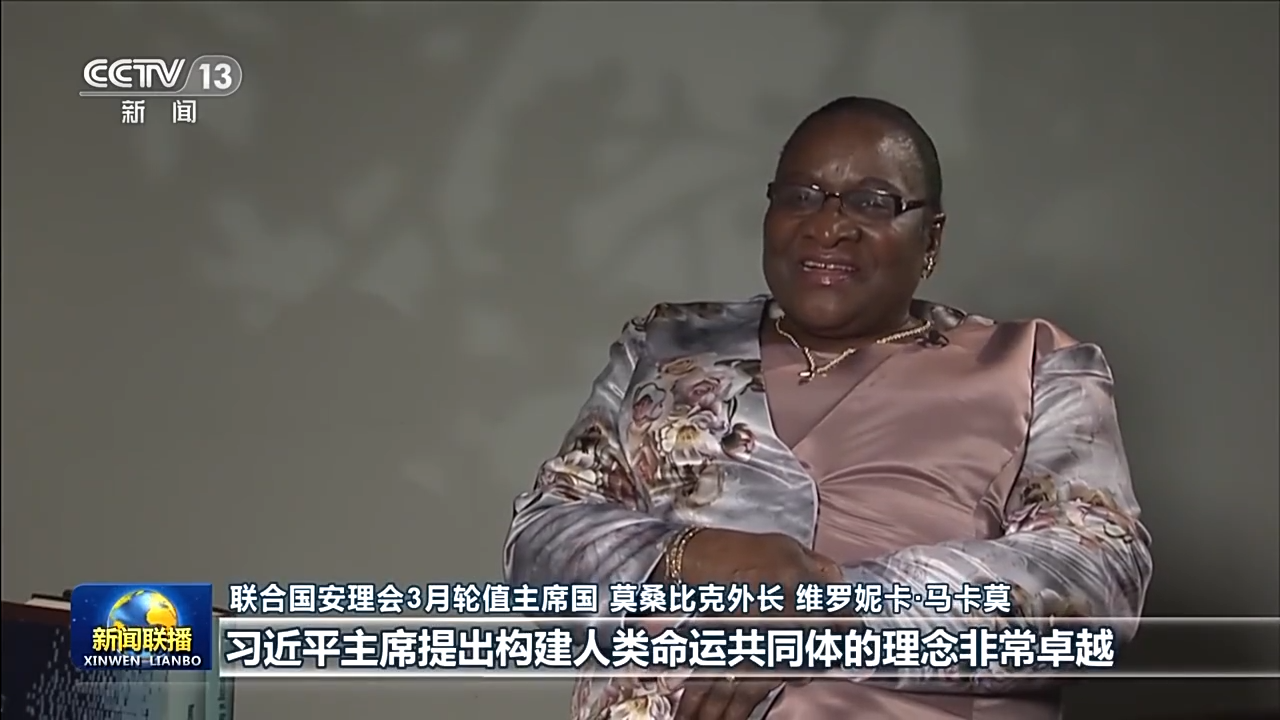 联合国安理会3月轮值主席国莫桑比克外长 维罗妮卡·马卡莫:习近平主席提出构建人类命运共同体的理念非常卓越,我们都应该为这个世界变得更加美好而努力。习近平主席的这一重要理念,能够把我们带向美好的未来。