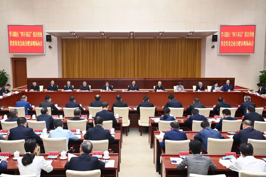 10月10日上午,省委常委会学习践行“四下基层”优良传统,赴合肥市召开现场办公会,调研省辖市贯彻党的二十大精神、落实省委十一届五次全会情况,面对面解决突出问题。省委书记韩俊主持会议并讲话。他强调,合肥是省会、是窗口,在全省发展大局中举足轻重,要充分发挥龙头作用,强化省会担当,百尺竿头、更进一步,在中国式现代化新征程上交出高质量发展的优异答卷。省委副书记、省长王清宪讲话。省政协主席唐良智,省委副书记程丽华,省委常委,省人大常委会、省政府有关负责同志出席会议。