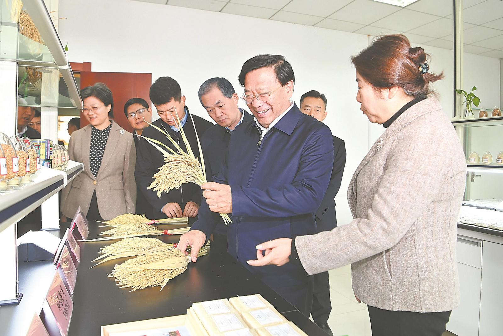 11月22日,省委书记韩俊在位于合肥市的荃银高科种业股份有限公司察看研发产品,听取核心技术介绍,了解公司发展情况。杨竹 摄
