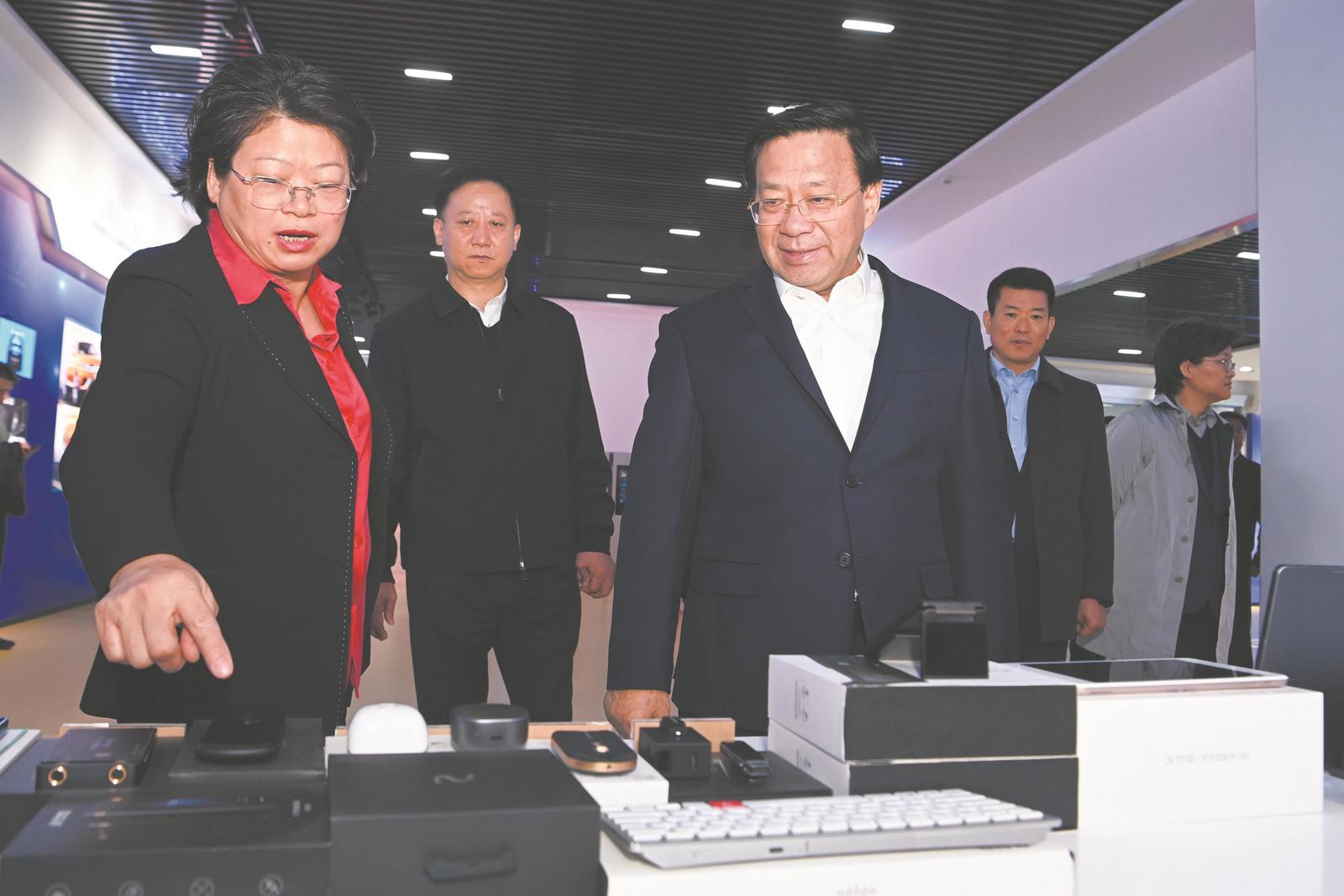 11月23日,省委书记韩俊在蚌埠国显科技公司了解企业发展历程、产品技术路线和市场应用情况。记者 杨竹 摄