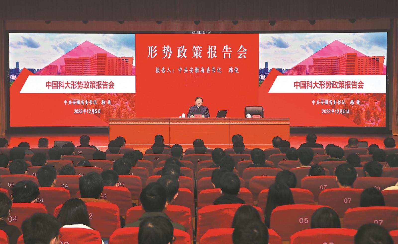 12月5日,省委书记韩俊在中国科学技术大学作形势政策报告。安徽日报记者 杨竹 摄