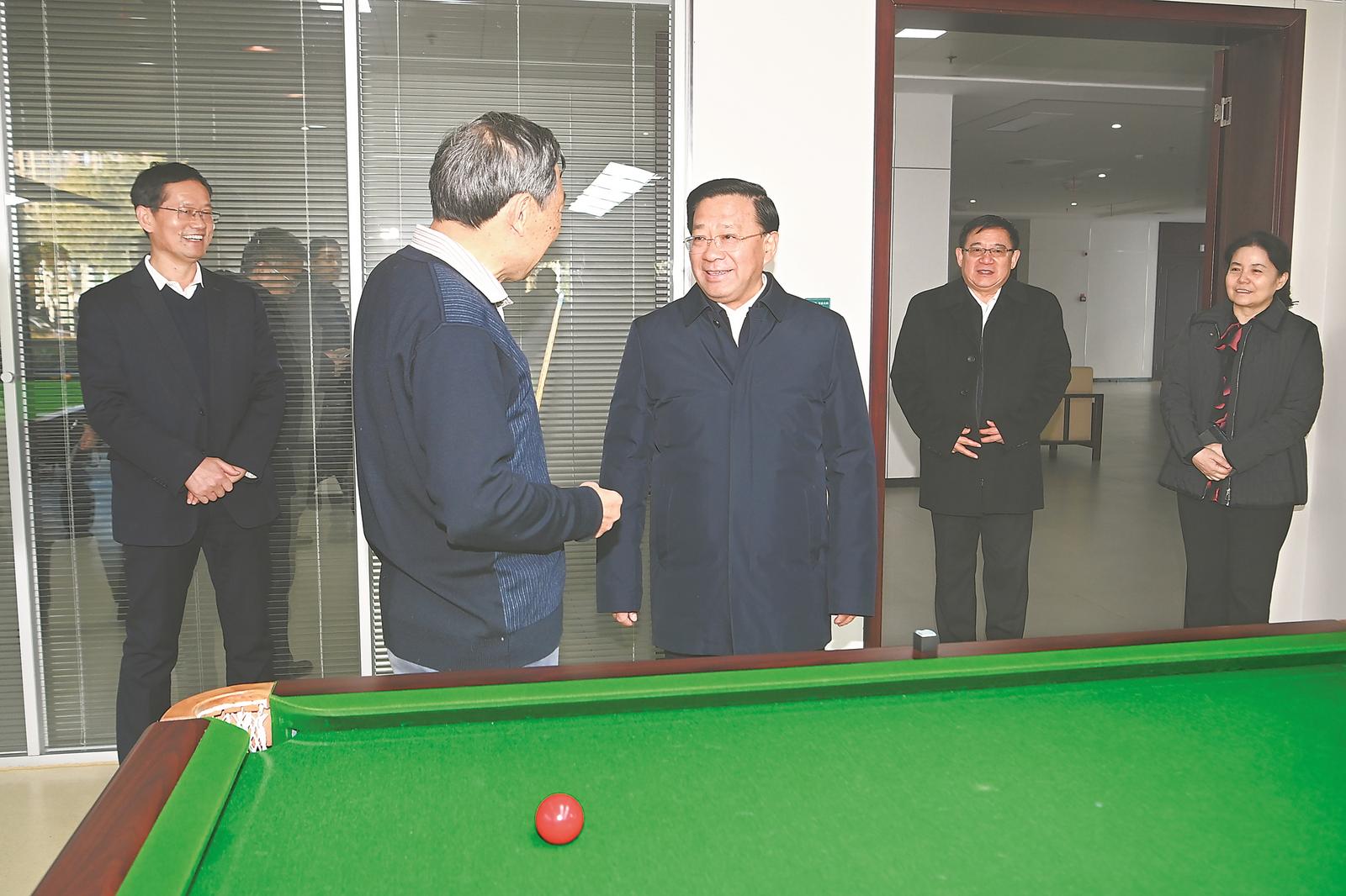 12月22日,省委书记韩俊在安徽老年大学实地察看老干部活动中心。 记者 杨竹 摄