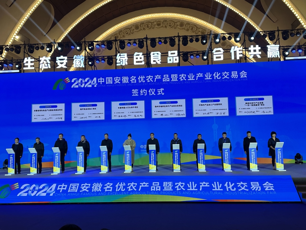 活动同步举办项目推介暨签约仪式。本届农交会精心遴选了235个农业优质投资项目进行招商推介,总投资金额2797.3亿元。相关推介项目全部编印成册发放给参会嘉宾,并通过二维码和安徽农网同步宣传。各市及安徽省供销社共推荐17个代表项目进行现场签约,项目涵盖食品深加工、智慧农业产业融合、冷链物流等多个领域,总投资金额1204.45亿元。