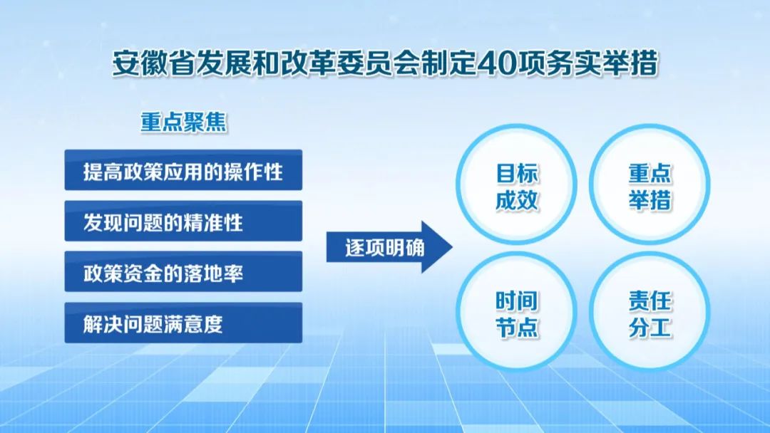 在服务好群众方面,突出统筹推进50项民生事项,根据实际情况今年谋划新增了农村敬老院运营服务能力提升等一批惠民举措,切实把民生实事办到群众心坎上;在服务好人才方面,常态化开展“人才安徽行”系列活动,通过搭建一流干事创业平台和产业创新平台,集聚更多产业发展急需的创新创业人才,加快科技成果在安徽落地转化;在服务好基层方面,明确支持重点区域增强发展动能、实施消费新场景培育计划,开展县域特色产业集群(基地)示范培育等,以实干实绩为全面建设现代化美好安徽增添强劲动能。