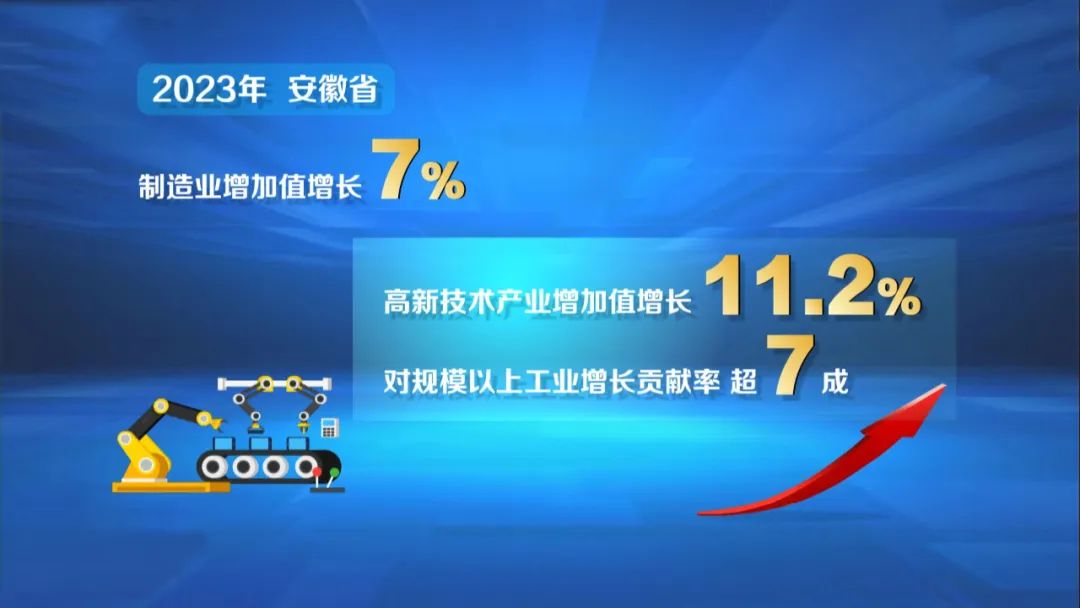 发展新质生产力,重在聚链成群,贵在创新引领。依托丰厚的创新资源和良好的营商环境,当前,安徽新一代信息技术、新材料等一批战略性新兴产业蓬勃发展,产业产值正加速迈向万亿元大关,过去一年,安徽制造业增加值增长7%,高新技术产业增加值增长11.2%,对规模以上工业增长贡献率超7成。