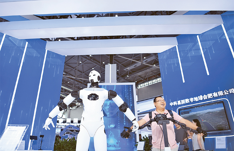 世界制造业大会是宣传展示先进制造业发展成果、促进制造业国际合作的重要窗口和平台。图为2023年9月20日,在安徽合肥举行的2023世界制造业大会上,一名观众在体验一款VR远程抓取机器人。 新华社记者 张端/摄