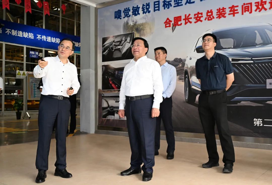 合肥长安汽车有限公司前身是安徽省淮海机械厂,是长安汽车集团渝外最大的乘用车生产基地。韩俊首先来到厂区察看各款车型,在总装车间详细了解企业生产经营、技术研发、出口销售等情况。他表示,合肥长安汽车有限公司落户安徽以来,积极导入广受市场欢迎的新车型,在生产管理中推广精益管理,企业发展势头良好,为安徽发展汽车首位产业作出了重要贡献,希望企业用好安徽产业配套和物流运输等优势,加强与集团总部对接,将更多新能源汽车车型导入安徽,提高零部件本地配套率,推动现有产能尽快达产,打造研产一体化新能源汽车生产基地。