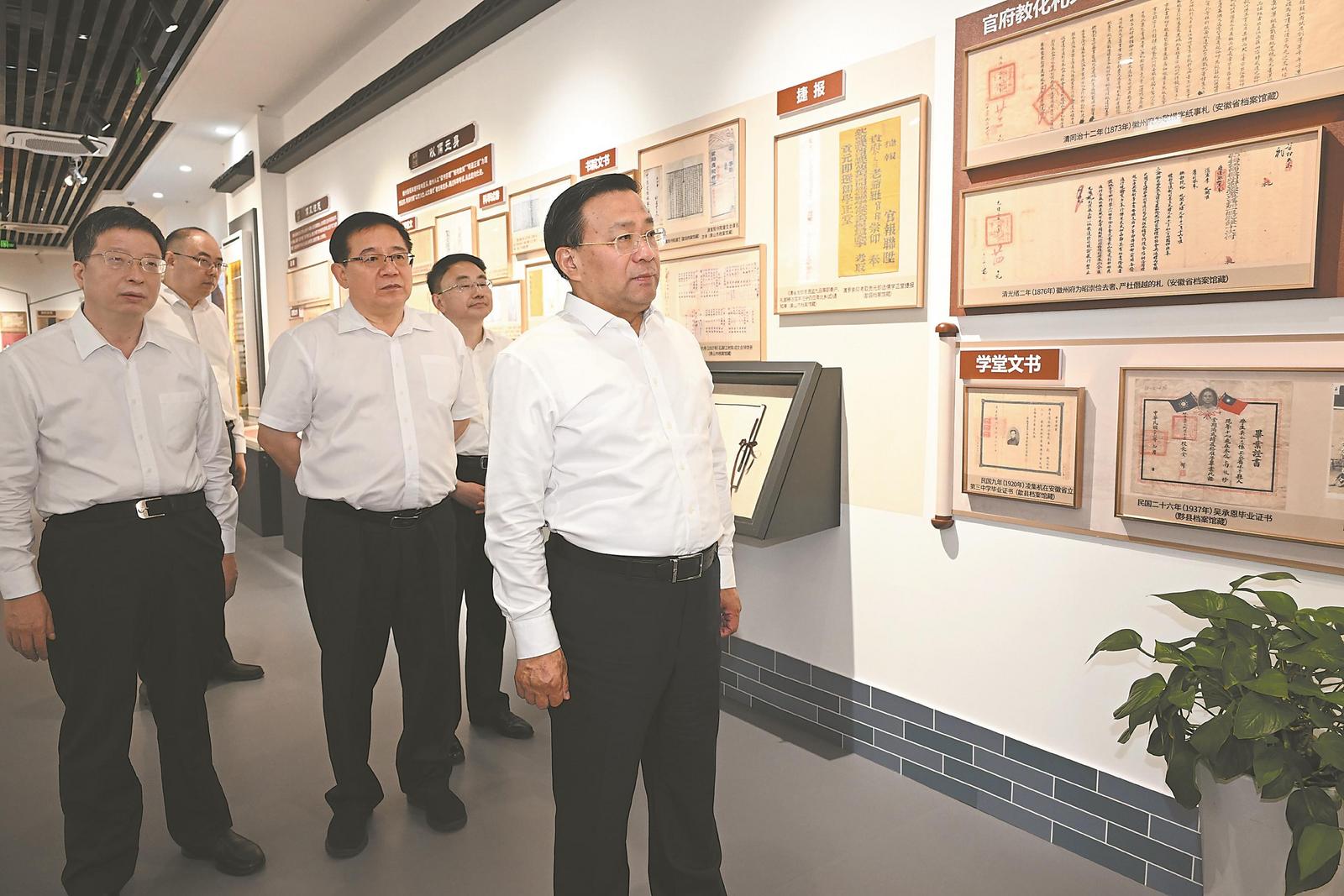 6月14日下午,省委书记韩俊在省档案馆,参观“千年‘徽’煌徽州历史档案联展”。安徽日报记者 杨竹 摄