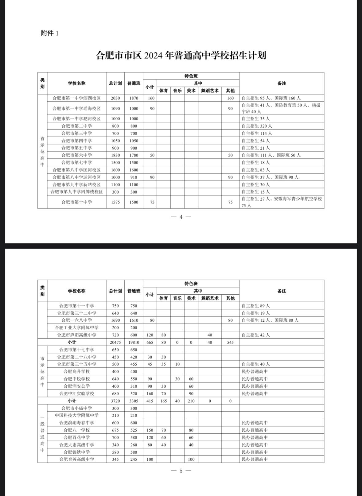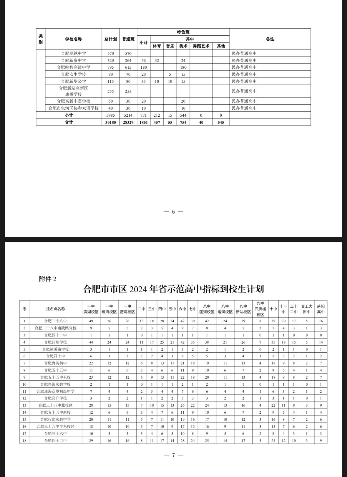 中安在线、中安新闻客户端讯 日前,合肥发布2024年市区普通高中总招生计划,总人数为30180人。继续落实初中指标到校政策,促进义务教育优质均衡发展,省示范高中招生计划总数的85%,具体安排如下:
