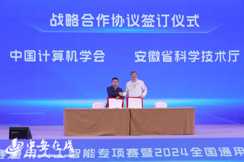 颁奖典礼上,中国计算机学会、安徽省科技厅和合肥、芜湖、马鞍山市负责同志为总决赛一二三等奖获奖代表颁奖,达成落地意向的市县和参赛队伍代表进行现场签约,中国计算机学会和安徽省科技厅现场签署了战略合作协议。颁奖典礼后,智谱华章、智象未来等知名人工智能企业负责人分别作了主题演讲和项目落地经验分享,省人工智能产业投资发展有限公司推介“安徽人工智能先导区”建设进展及有关政策,省信用融资担保集团发布“人工智能担保系列产品”,总决赛一二等奖获奖项目还进行了现场展示。活动期间还安排了“双招双引”对接恳谈会和中国计算机学会合肥第七届会士论坛及大模型论坛,为促进项目各方加深理解和对接合作、探讨人工智能前沿趋势和技术挑战等拓展平台渠道。