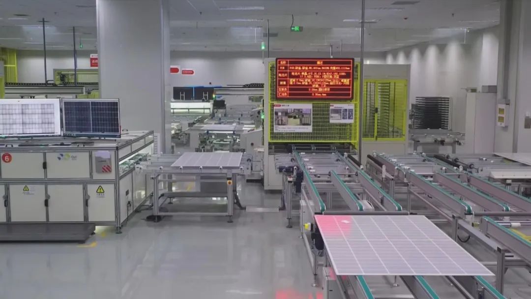 这是位于颍上县的安徽赛拉弗能源有限公司。在我所在的这个生产车间里的8条全自动化生产线,正在加紧生产的就是这家企业的“明星产品”,叫双玻高效光伏组件。相比于以前的单面玻璃,它的两面都可以实现发电,效率提升了接近20%。