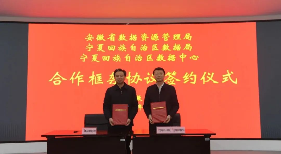 今天下午,安徽省数据资源管理局与宁夏回族自治区数据局、宁夏回族自治区数据中心,签订相关协议和合作备忘录。
