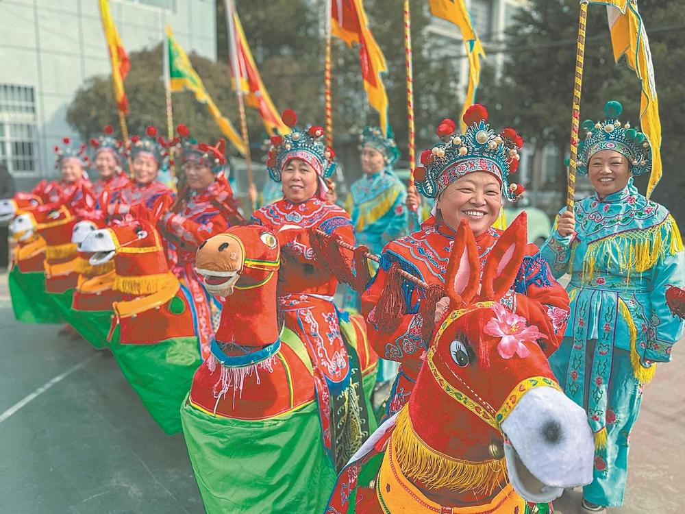 春节前夕,在淮南毛集实验区花家湖社区大院,锣鼓喧天,“战马”嘶鸣,上演一场精彩的马戏灯表演。记者李博 通讯员徐瑞成 摄