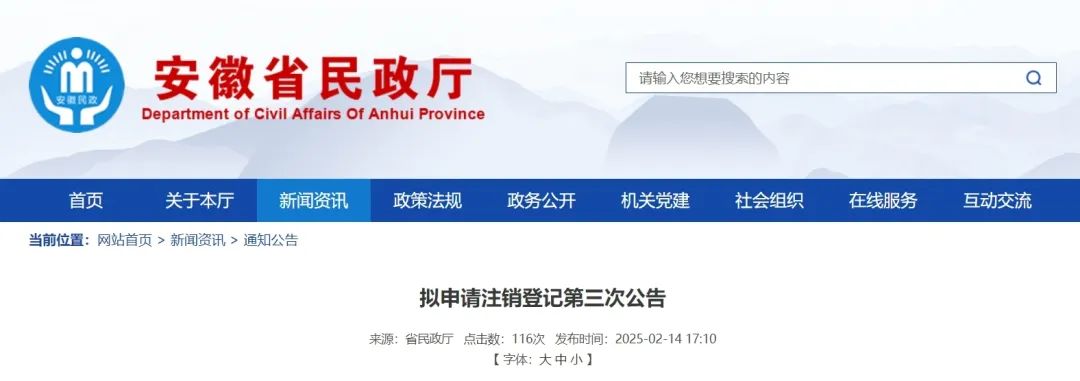 信息来源:安徽省民政厅网站