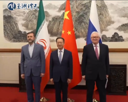 会晤由外交部副部长马朝旭主持。俄罗斯副外长里亚布科夫、伊朗副外长加里布阿巴迪出席,三方就伊朗核问题及其他共同关心的问题交换意见。