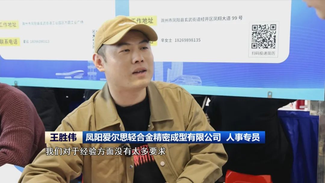 凤阳爱尔思轻合金精密成型有限公司 人事专员 王胜伟:我们对于经验方面没有太多要求,我们想培养一些人才,一边实践,一边学习,5000(元)左右的薪资,包食宿,给这些刚出来的大学生解决一些生活方面的负担。