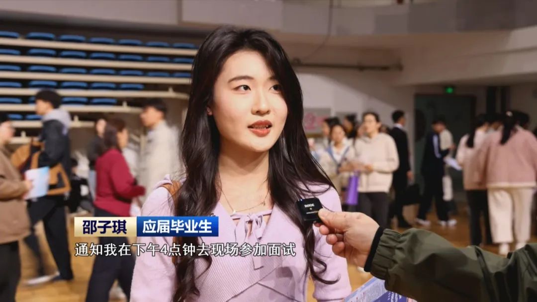 应届毕业生 邵子琪:投了简历,通知我下午在4点钟去现场参加面试。感谢学校和政府,为我们设立了一个广大的平台,节约了时间和成本。